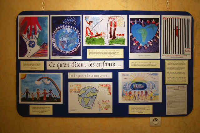 Des dessins(*) (n’apparaissant pas sur la photo ci-dessous) interrogent l’avenir, à partir de la phrase volontairement tronquée : « Le XXIe siècle sera non-violent, ou… »