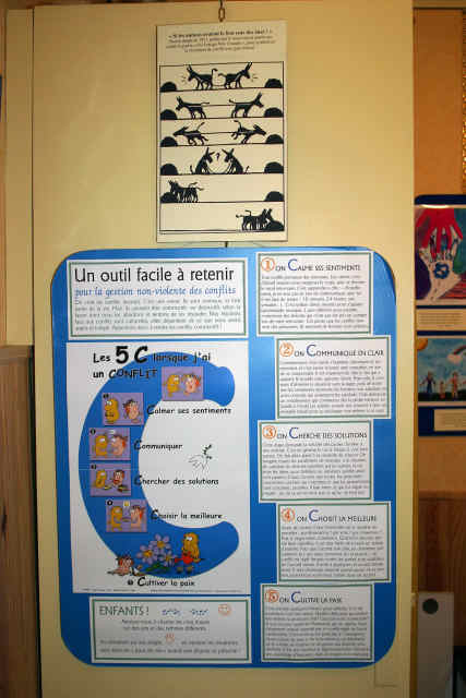 Dans un esprit ludique, on trouve aussi des affiches telles que les « Sept attitudes face à la violence » (avec des animaux), la célèbre affiche des deux ânes, ou encore « Les cinq C » où il est proposé de chanter les « 5C » en comptant sur les doigts de la main. Des explications accompagnent l’affiche proprement dite.